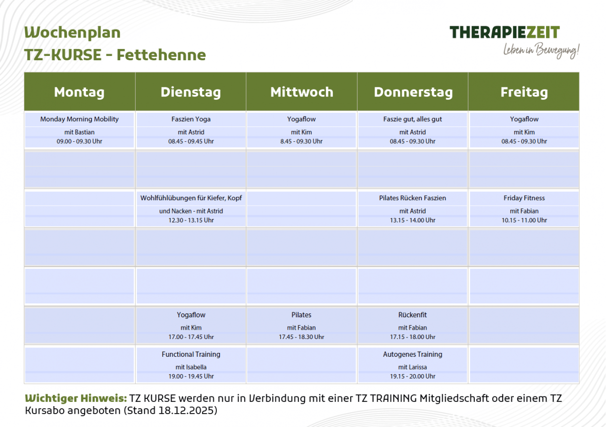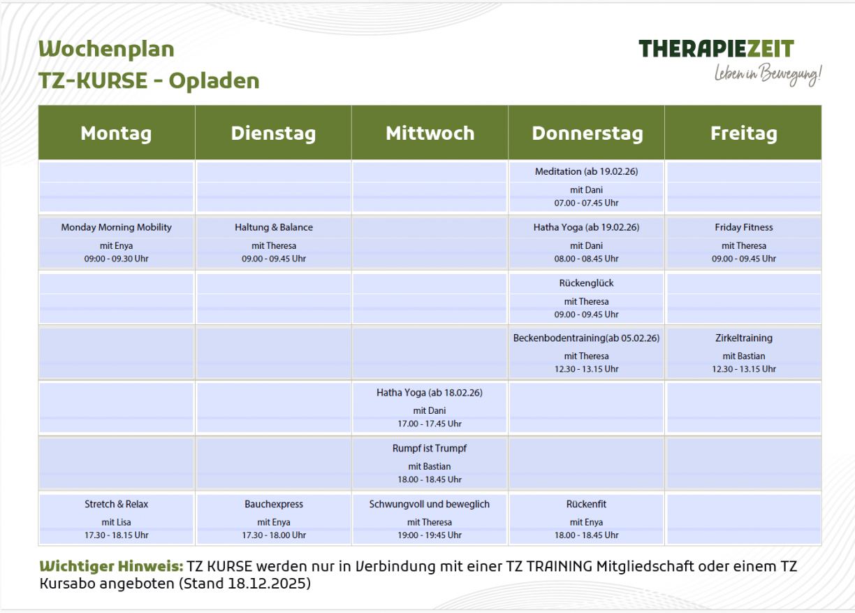- In unserem TZ TRAINING sind die TZ Kurse inklusive.