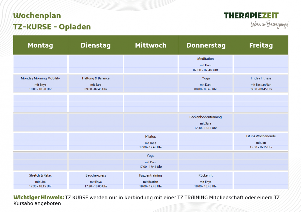 - In unserem TZ TRAINING sind die TZ Kurse inklusive.